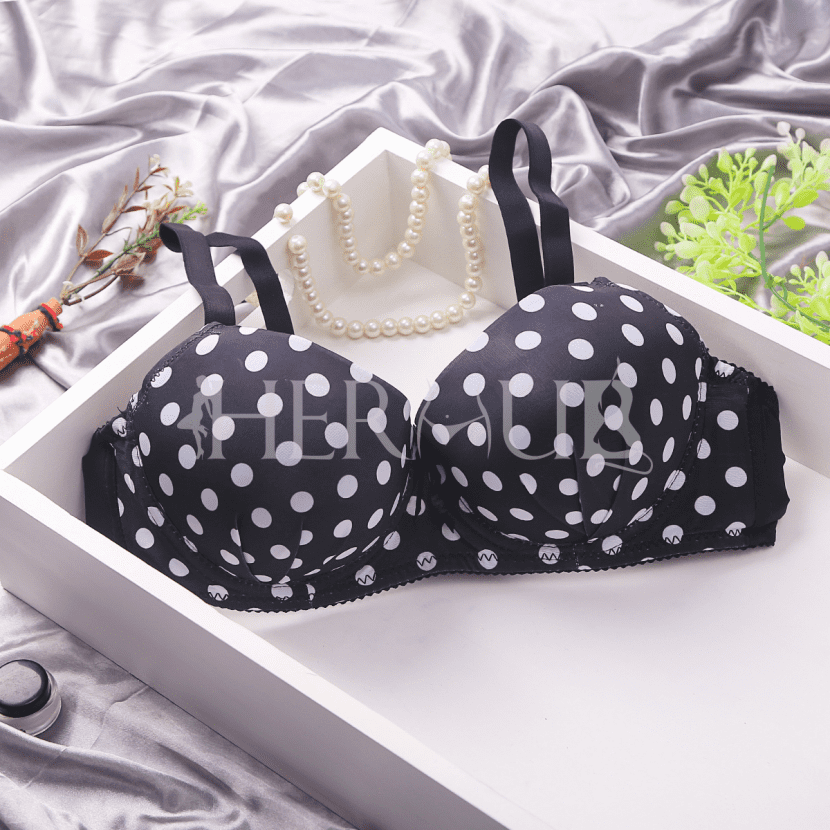 From Her Hubs emerges the charming “Polka Dot Delight Bra,” a delightful fusion of style and comfort in lingerie. This padded bra features underwires for excellent support, ensuring a flattering silhouette while maintaining a gentle and comfortable feel.